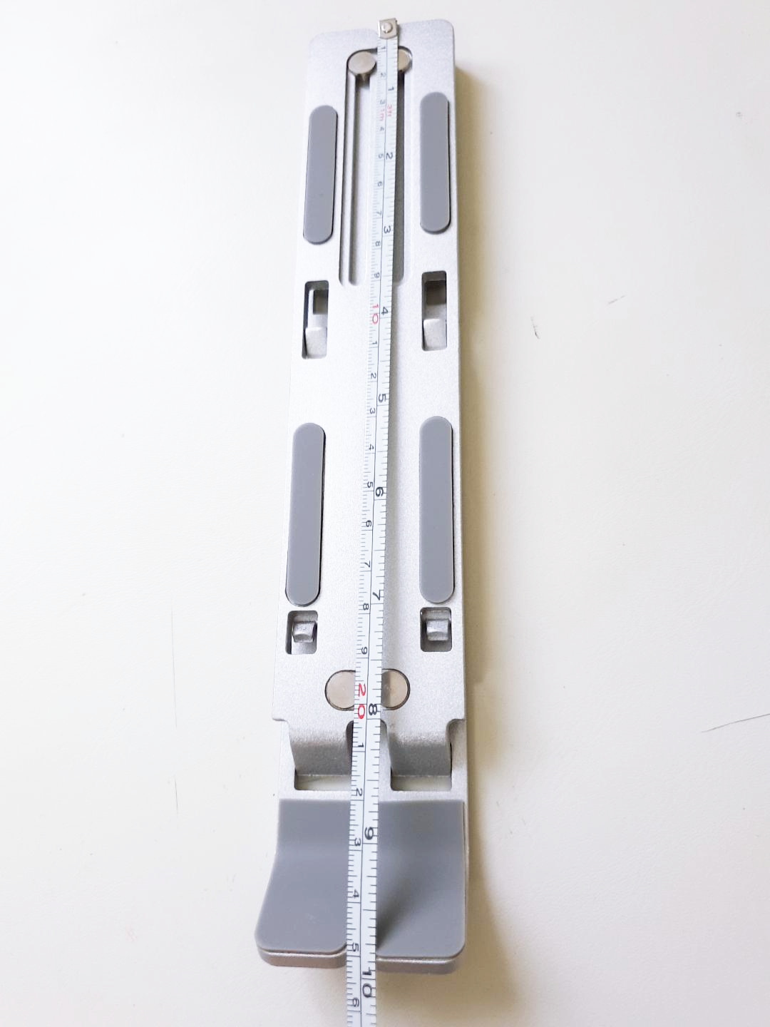 노트북을 올렸을 때의 모습이다. 15인치 노트북에는 최소 18cm 이상의 너비를 가진 거치대가 필요하다는 것이 보인다.