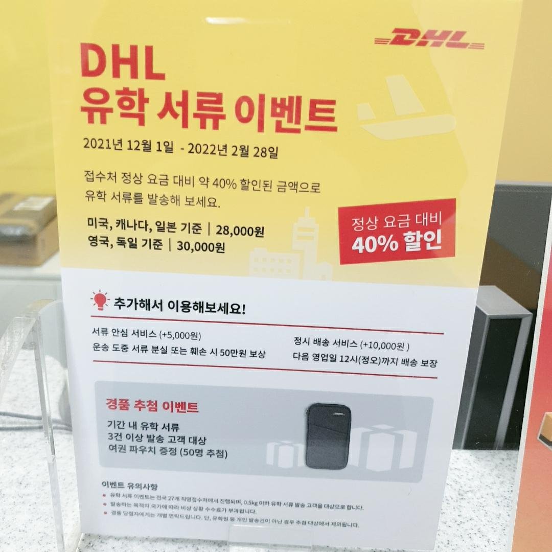 일반적으로 해외 우편을 부치려면 우체국 or DHL이라는 선택지를 만나게 되는데, 유학 서류라고 한다면 DHL을 이용하는 것을 적극 추천한다.