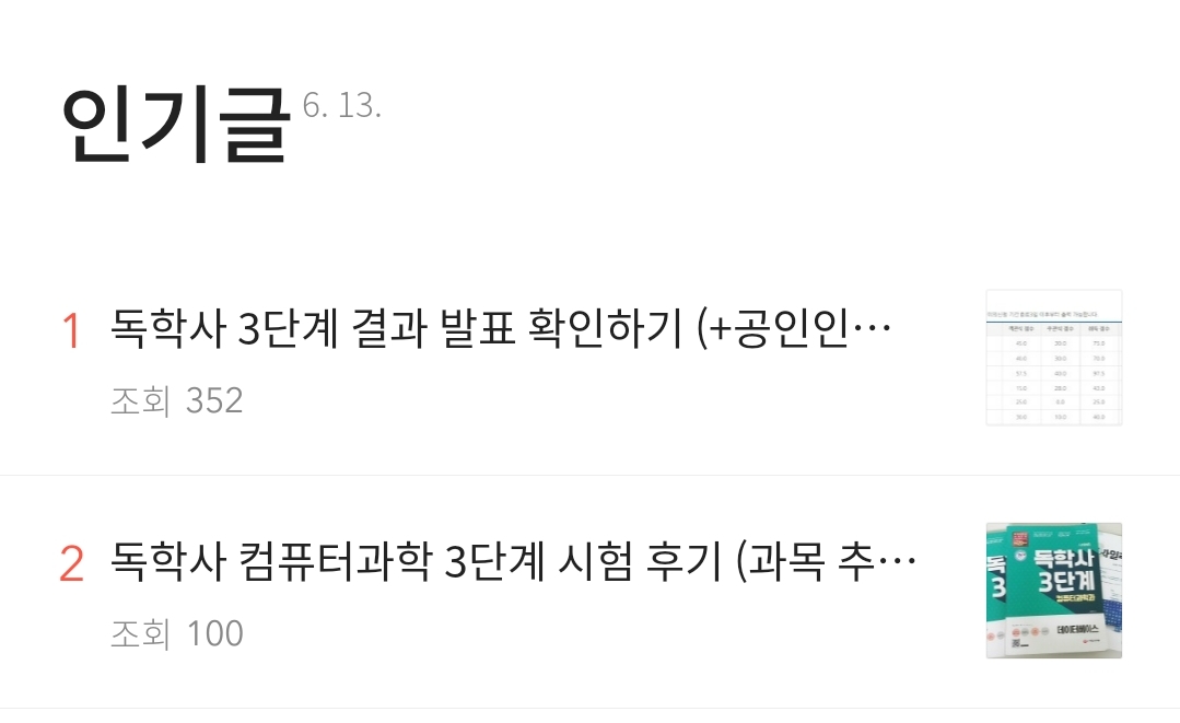 어찌된 일인가 하고 포스팅별 조회수를 살펴 보니 바로 어제가 독학사 결과발표일이었기 때문이다.