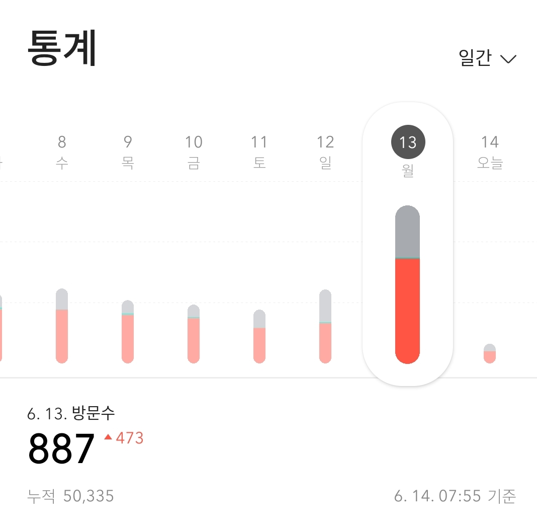 그런데 어제 아무 생각 없이 티스토리 어플을 켰는데 방문자가 급등해 있었다.