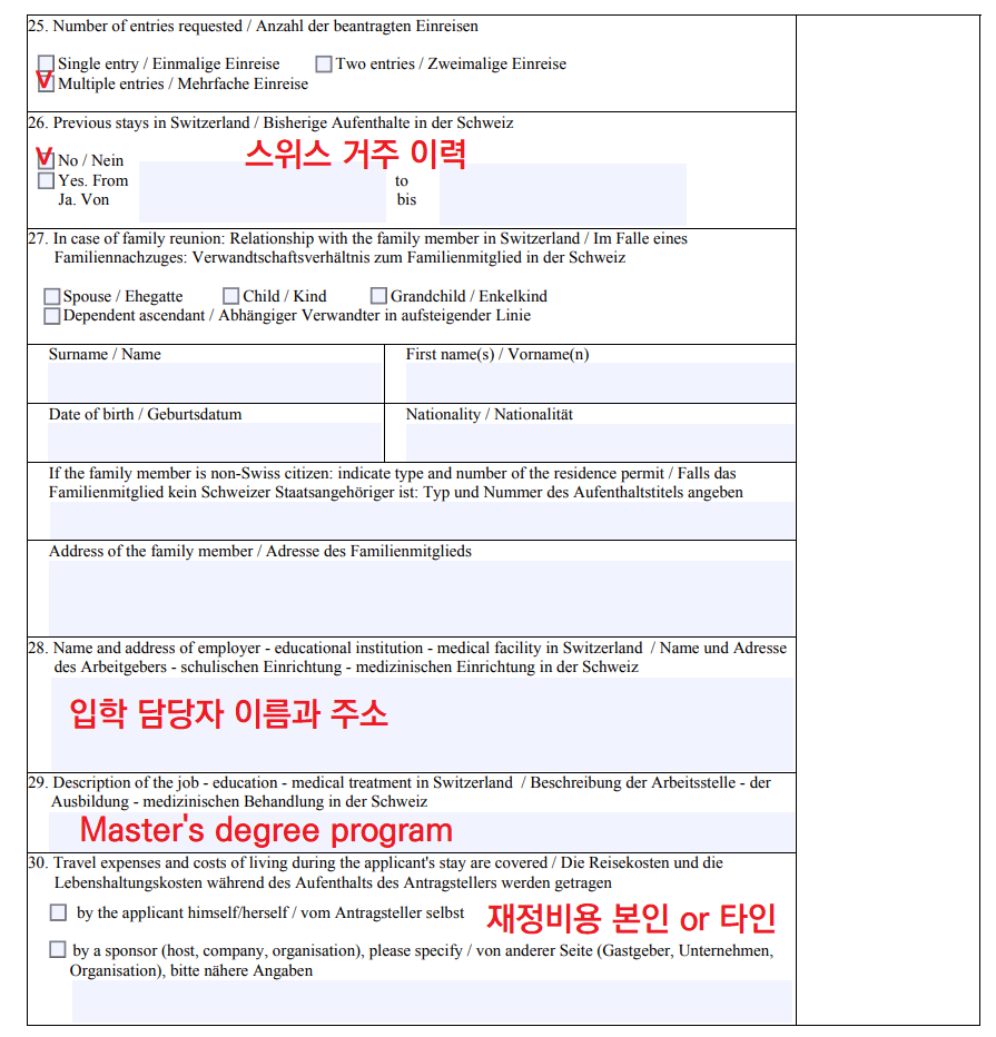 - Written commitments: 공부가 끝나면 스위스를 떠나겠다는 서약서 같은 건데, 정해진 양식은 없고 인터넷에 돌아다니는 거 썼다