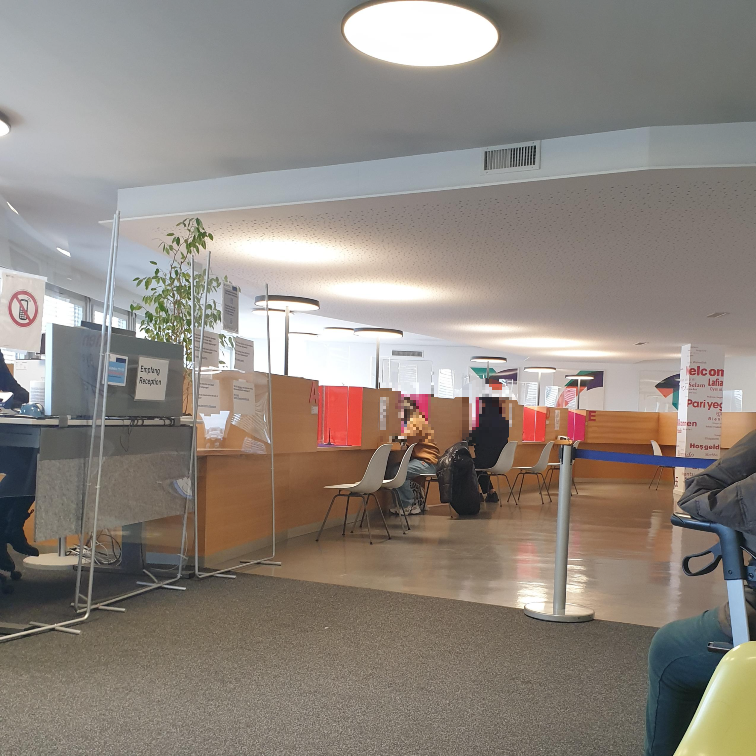창구에 가서 내가 스위스 통장이 없어서 비자를 아직 못 받았는데 Meldebestätigung을 받을 수 있는지 문의했다.