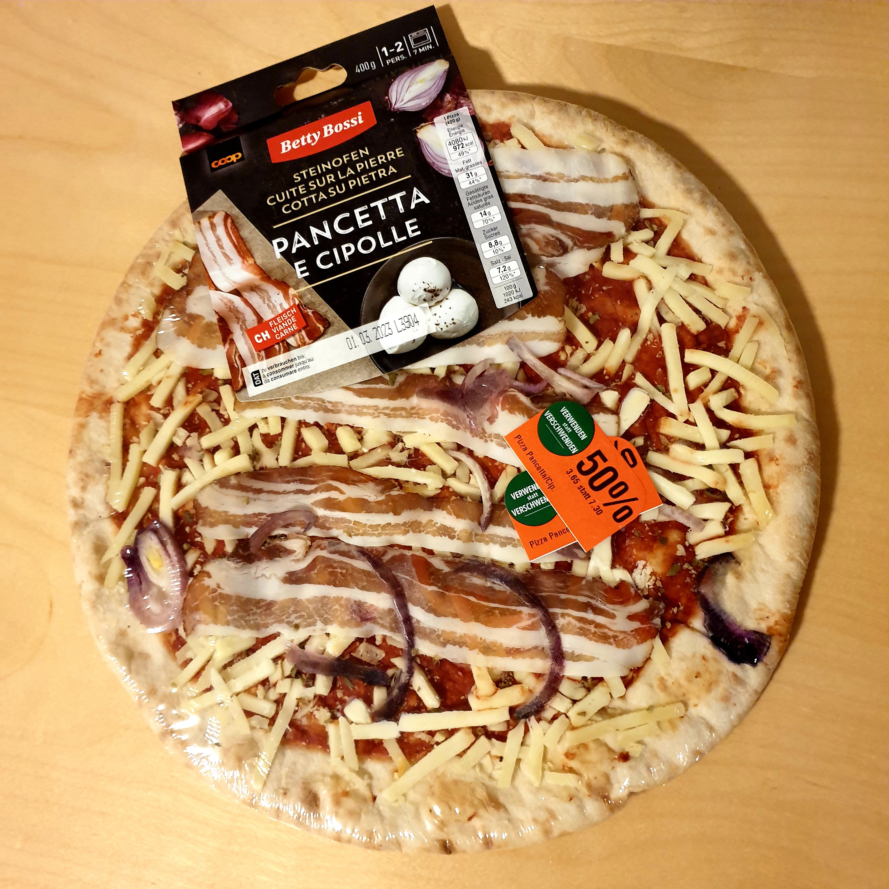 바로 고민도 안하고 집어 온 이 피자의 할인된 가격은 3.65프랑으로 약 5000원.