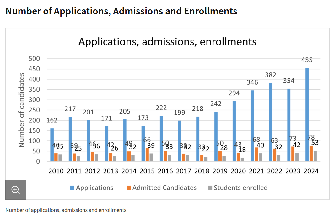 아래 자료로 보면 석사 합격률은 20% 정도이다. 아마 ETH 통합 자료라 더 짜게 나온 듯 하다.
