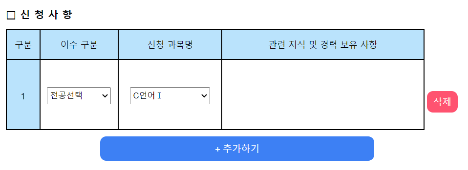우선 내가 신청하는 과목에 대해, 그 강의를 수강하는 데 필요한 사전지식을 가지고 있는지 300자 이내로 기술해야 한다.