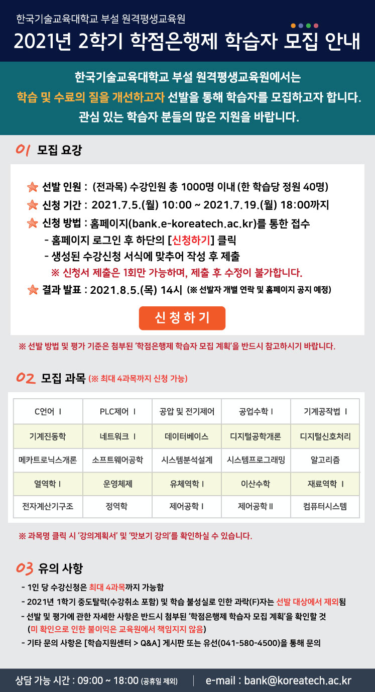 오늘은 D-day였다. 바로 한국기술교육대학교 원격평생교육원(이하: 한기대)의 학습자 신청 결과가 나오는 날이다! 플래너 없이 혼자 학점은행 6편: 한국기술교육대학교 원격평생교육원 무료 강의