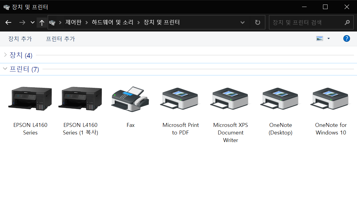 2. '하드웨어 및 소리'의 '장치 및 프린터 보기'를 클릭한다.