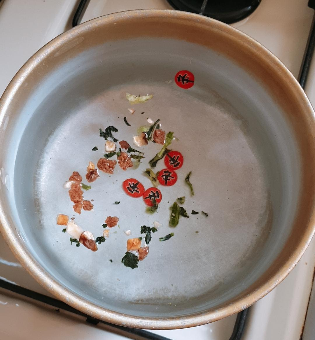 약간의 물(봉지에는 4숟갈이라고 적혀 있다)만 남기고 물은 버린다.