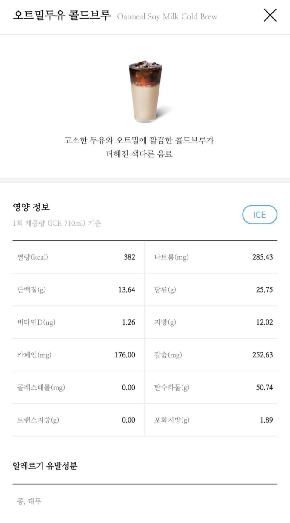 우선 메뉴명 그대로 오트밀 + 두유 + 콜드브루가 섞인 음료이다.