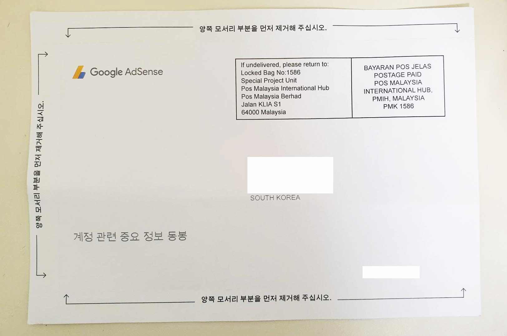 지난달 중순, "조치 필요: 애드센스에 등록된 수취인 주소를 인증해 주세요"라는 이메일이 날아왔다.